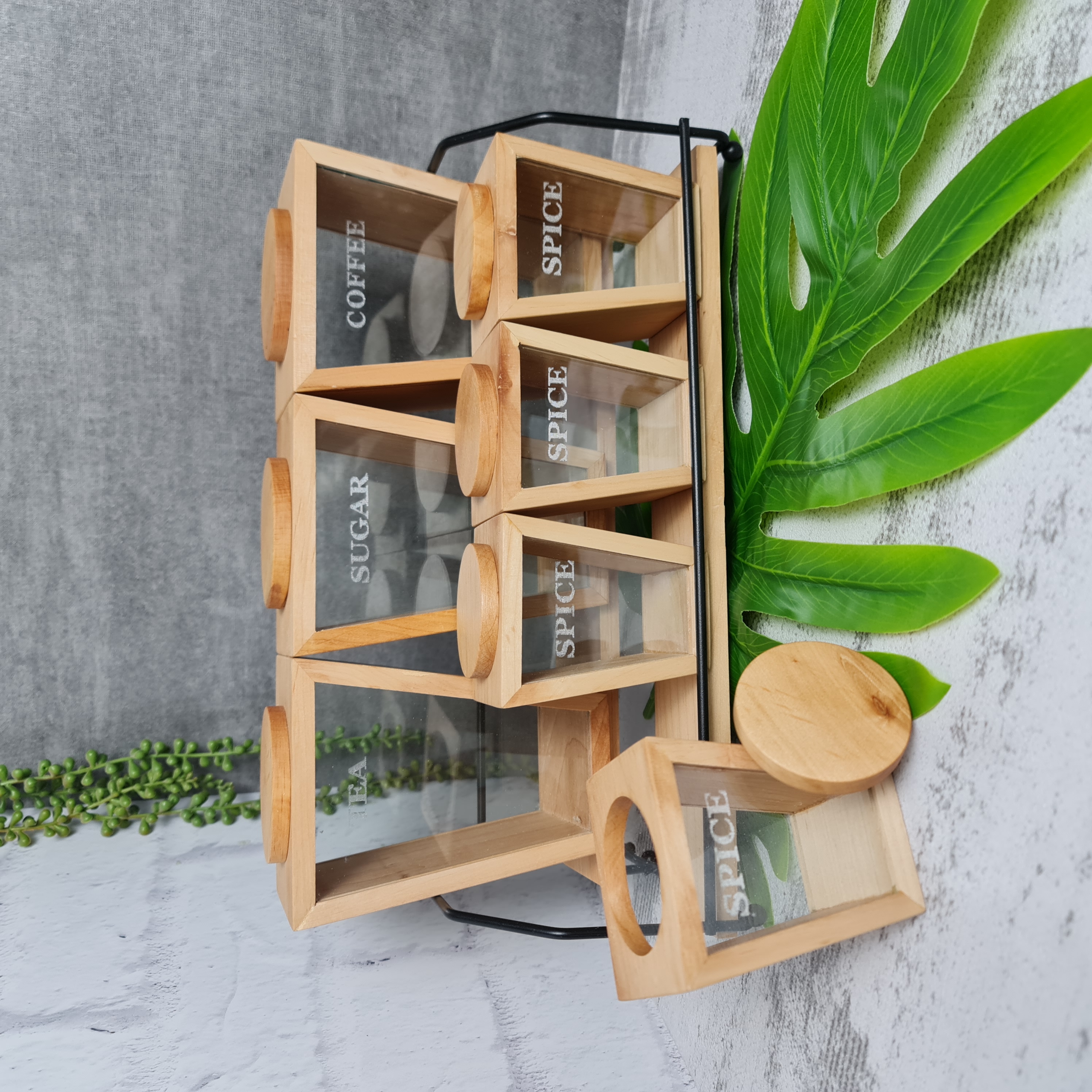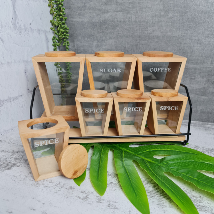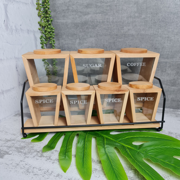 سرویس پاسماوری ۷ پارچه چوبی شیشه همراه با استند فلزی مشکی