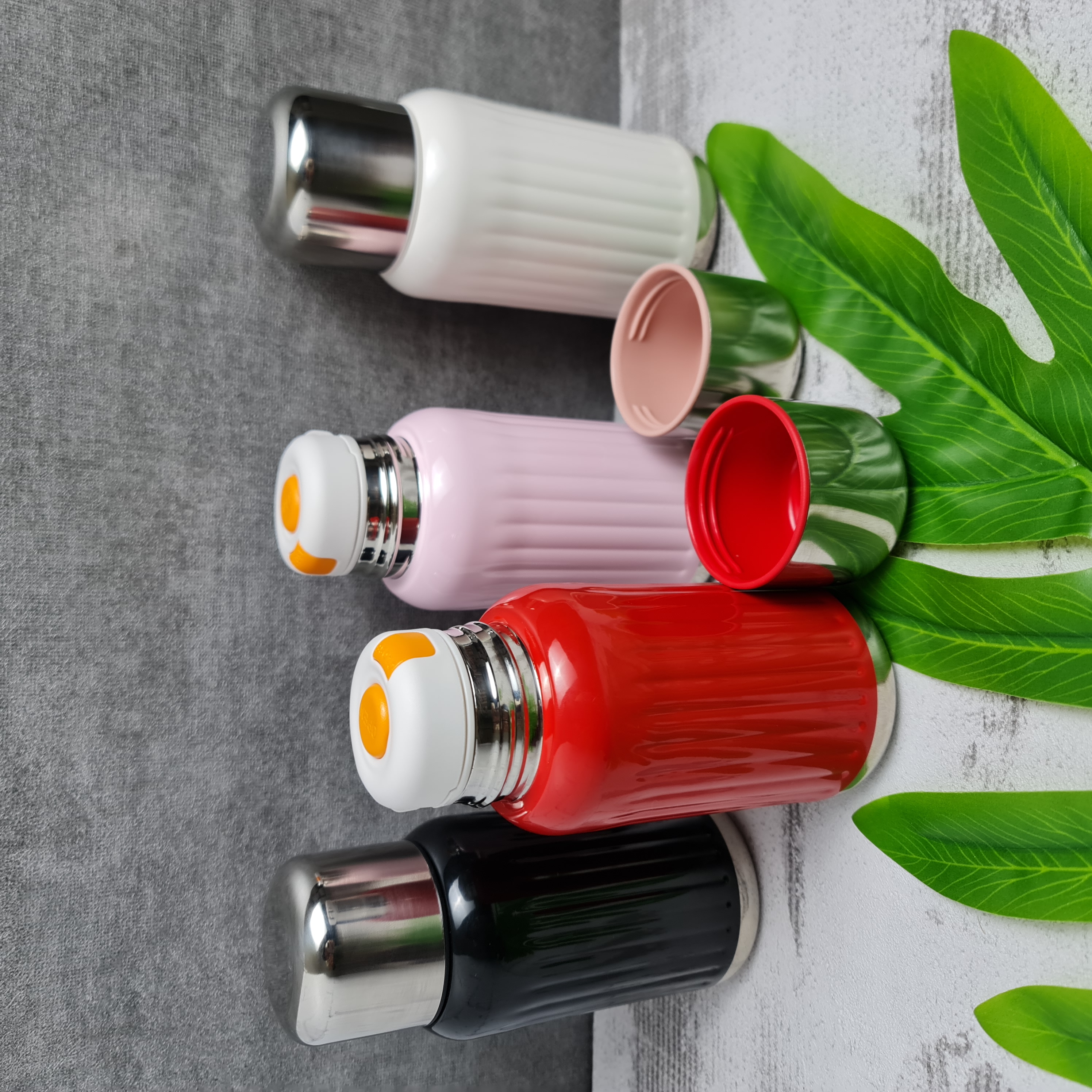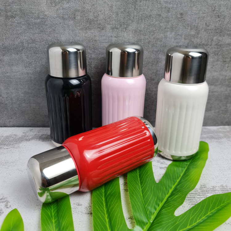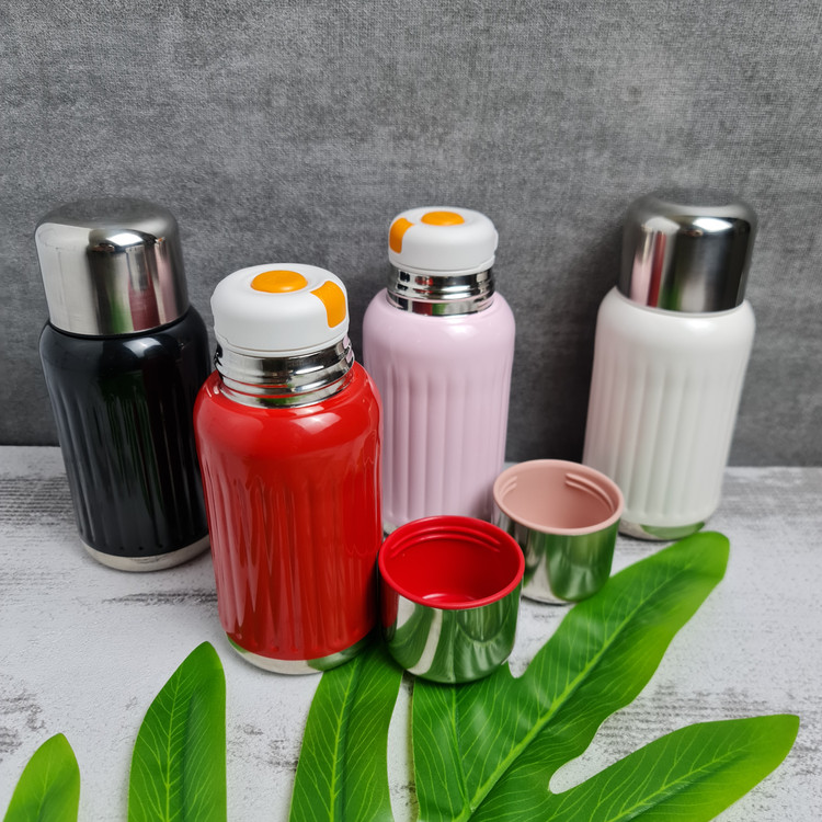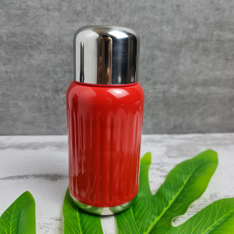 فلاسک استیل رنگی گنجایش ۳۰۰ میلی لیتر دارای درب آسان نوش قفل دار که درب فلاسک به عنوان لیوان هم حساب میشه